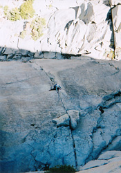 | まずは日の当たらないこのルートから。 かのダンノスマンがマスターズオブストーン2でオンサイトフリーソロしてる。 |