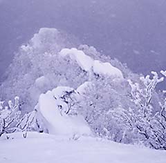 | 期間2005年1月30日~31日 メンバー 大関、蔵元、高木 八ヶ岳の東面はゲレンデ的な西面とは異なり北アほどではないが東面に位置するため雪深く静寂な山行が楽しめる。稜線上から派生する代表的な尾根はどれも上部はナイフリッジや岩峰を有し手応えある登攀を約束してくれる。 今回は数年前から目を付けていた旭岳の東稜。 しかし今回バッチタイミングで今期最大の寒気団が南下。流石に八ヶ岳といえどもこの寒気ではかなり雪が深く荒れることが予想された。しかも新人の高木さんこと文ちゃんも連れているので当初中止も検討したが助っ人蔵元もいることだし東海最強ラッセラー2人ならカバーできると判断。 決行に至った。 1月30日 前日は美しの森駐車場に11時半過ぎ着。オイラのトレ蔵の中で仮眠。コイツで仮眠とるのは2回目だが3人でもスペースがあった。 朝起きると今期一番の寒気が南下しているのを示すよう雪が舞っており山は見えない。 取り合えず朝食を取り7時半出発。 林道は堰堤が出てくるまではトレースが残っていたもののその後は風で消され明瞭でない。 結構はまるラッセルとなり小屋には10時前着。 休憩を取りいざ出発するが出合小屋から尾根までのプラトーは地吹雪のような状態でこんなんで大丈夫なのか?とちょっと不安いに陥る。